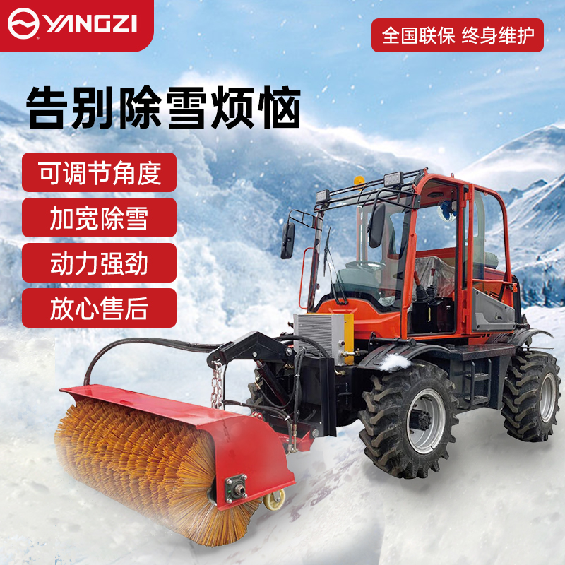 揚(yáng)子YZ-SXJ006駕駛式掃雪機(jī)四驅(qū)驅(qū)動輕松除雪,雪地專用防滑輪胎適合多種地面材質(zhì),鋼絲滾刷不傷地面耐磨耐用。