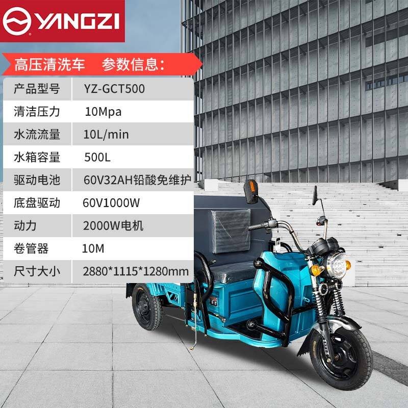 揚子YZ-GCT500純電動高壓清洗車,市政環(huán)衛(wèi)、綠化灑水、道路降塵移動沖洗一步到位,500L大容量水箱持久清洗無須反復(fù)加水。
