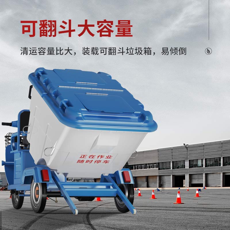 揚(yáng)子環(huán)衛(wèi)搬運(yùn)車安全環(huán)保,可翻斗大容量垃圾箱裝得更多傾倒更輕松,高亮大燈聚光強(qiáng)低能耗,夜間行駛也安心。