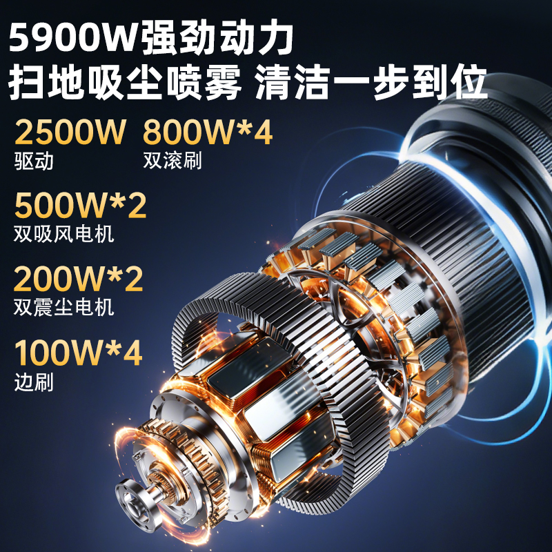 5900W強勁動力,掃地吸塵噴霧清潔一步到位,國內(nèi)知名品牌電池單次滿電可清掃120000㎡