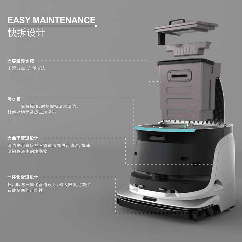 功能強(qiáng)大,掃地、吸塵、洗地、塵推、消毒、自清潔六大清潔工序,高度700mm,高度僅550mm,極致貼邊邊界自動(dòng)識(shí)別,進(jìn)口靜音材質(zhì)噪音低質(zhì)55db
